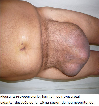 Palabras clave: hernia gigante, inguinoescrotal, neumoperitoneo, hernioplastia.