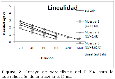 2. Ochoa R, Martínez JC, Fajardo EM, Álvarez E, Estrada E, García AM, et al. Validación de un ELISA para la cuantificación de antitoxina tetánica en suero humano. VacciMonitor. 2000; 9(4):16-21.
