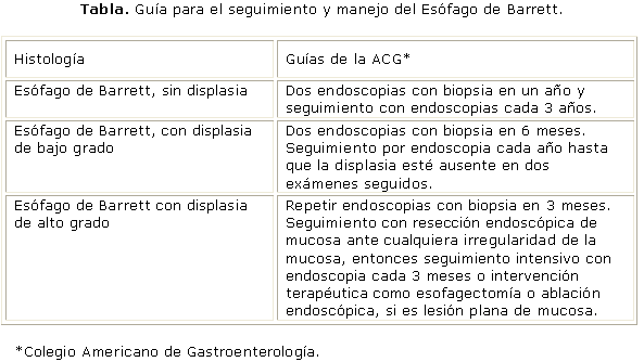 La mayoría de los especialistas está de acuerdo en llevar como seguimiento el establecido por el Colegio Americano de Gastroenterología (ACG) 26 (Tabla).