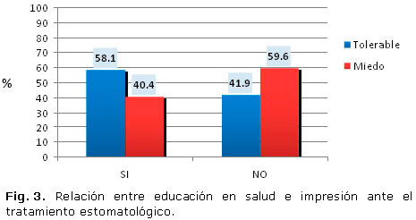 Relación entre educación para la salud e impresión ante el tratamiento estomatológico