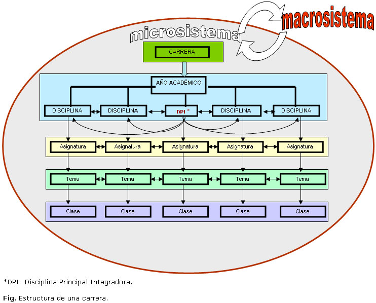 La carrera de Medicina, microsistema, conformado por una plataforma de subsistemas que en su conjunto, pretenden dar salida a un profesional que responda a las demandas de salud de la sociedad (macrosistema) en la cual se inserta.