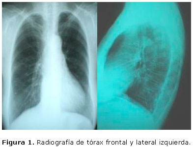 La radiografía de tórax puede ser normal o poco significativa, como en nuestro caso. En ocasiones podemos encontrar signos de atelectasia pulmonar y/o hiperinsuflación.